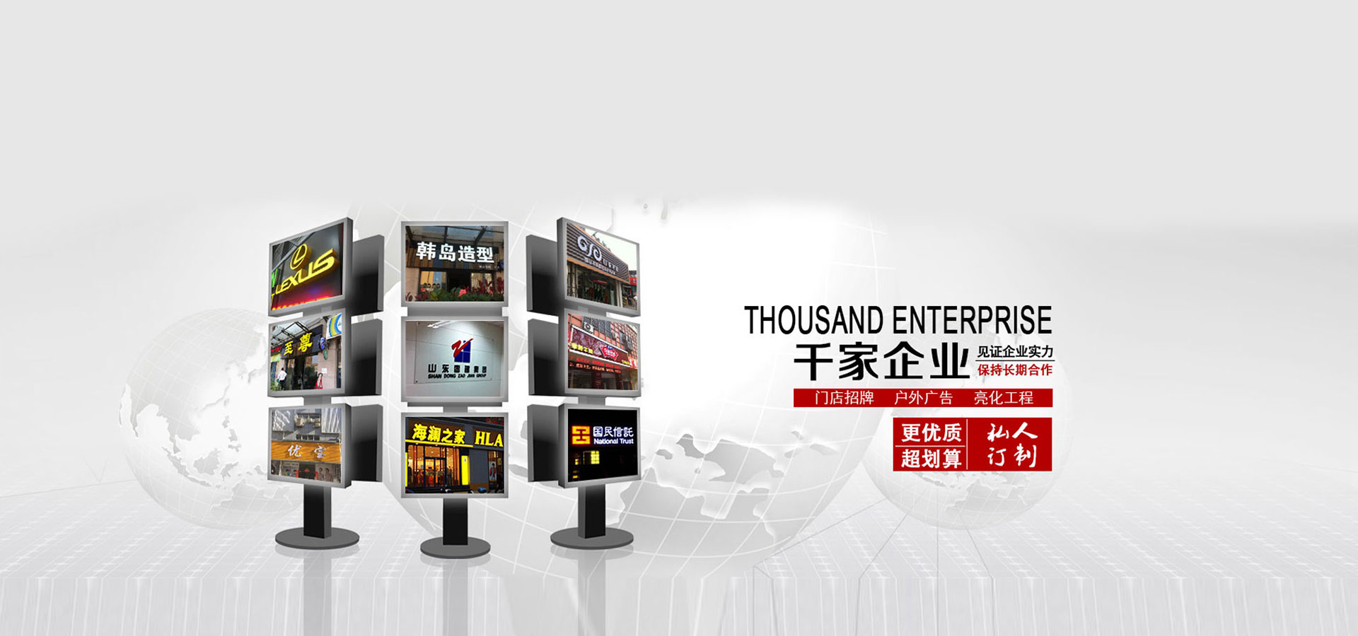 承德市聯(lián)拓廣告?zhèn)髅接邢薰? 承德市聯(lián)拓廣告?zhèn)髅接邢薰?是一家專業(yè)從事各類戶外廣告策劃、設(shè)計(jì)、制作、安裝、代理、發(fā)布、服務(wù)的綜合性廣告公司。 公司主營(yíng)業(yè)務(wù)有:大型戶外廣告牌、霓虹燈廣告牌、亞克力發(fā)光字、燈箱廣告及各類戶內(nèi)外標(biāo)識(shí)牌工程、大樓夜景泛光照明工程等。堅(jiān)持用產(chǎn)品和服務(wù)打動(dòng)每一位客戶,即以精湛的工藝、優(yōu)質(zhì)的服務(wù)、務(wù)實(shí)的精神,專業(yè)真誠(chéng)地對(duì)待我們的客戶,滿足客戶的需求。擁有一批經(jīng)驗(yàn)豐富的設(shè)計(jì)師及工程制作、安裝人員,是一支專業(yè)程度高、勇于創(chuàng)新、團(tuán)結(jié)的團(tuán)隊(duì),致力為客戶提供全程個(gè)性化...